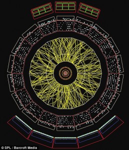 Yorkshire-born particle physicist and CERN spokesperson Christine Sutton said: ‘When two lead-ions collide basic particles like pions – one of the basic particles that make up atoms – are expelled.