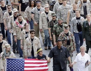 A veteran from New York who only gave his name as Jerry said: “I don’t want any part of this anymore. I chose human life over war, militarism and imperialism.”